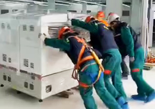 ◆ 冷凍機(jī)組高空吊裝,就位